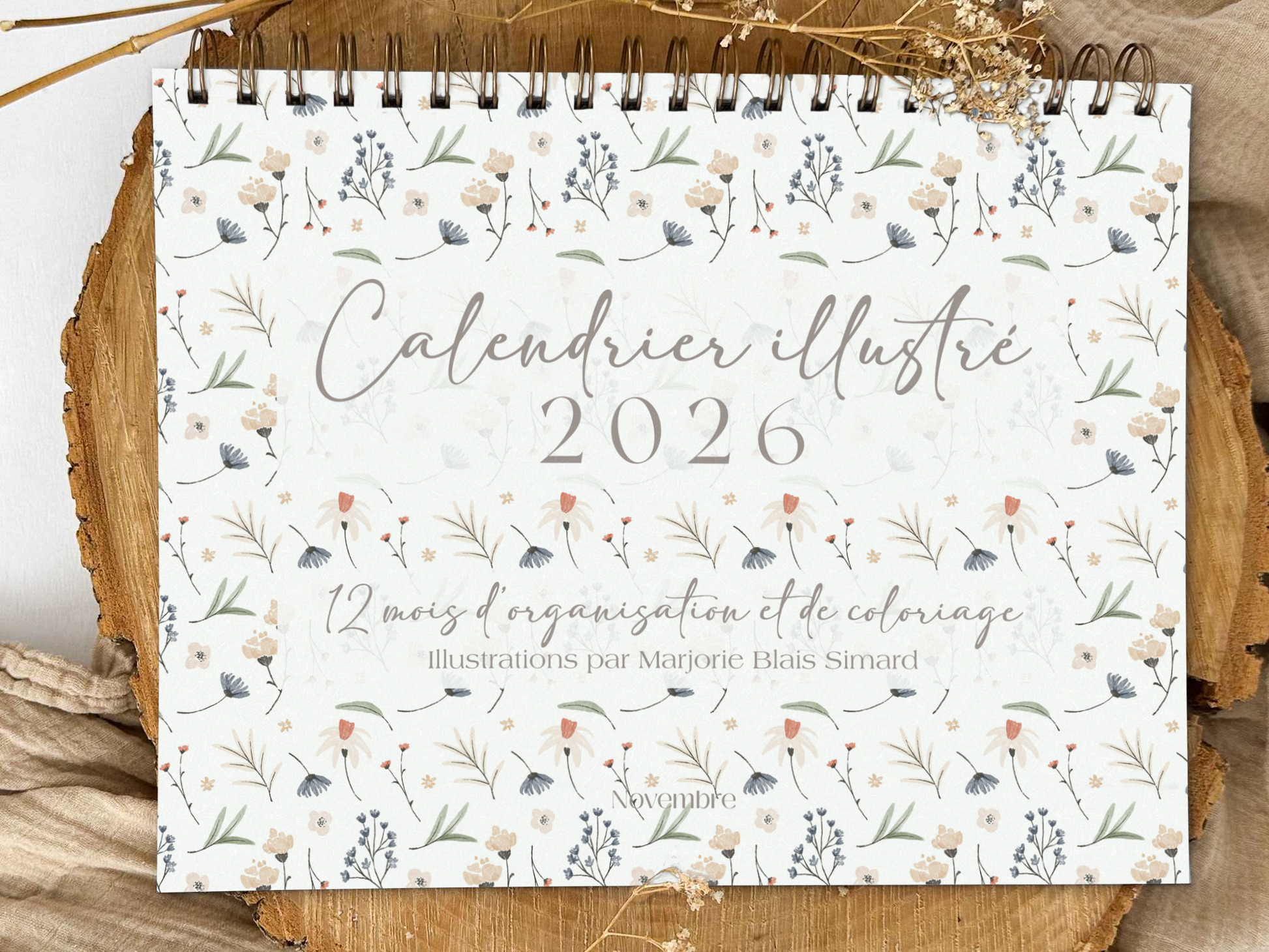 Calendrier illustré 2026 à colorier Fleuri